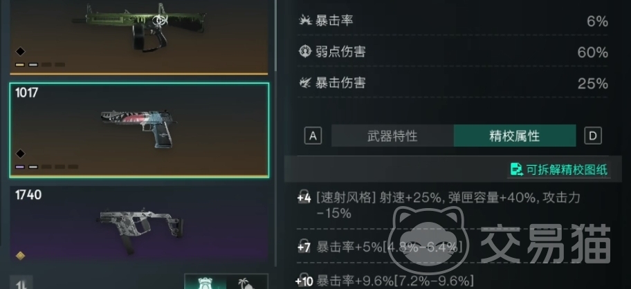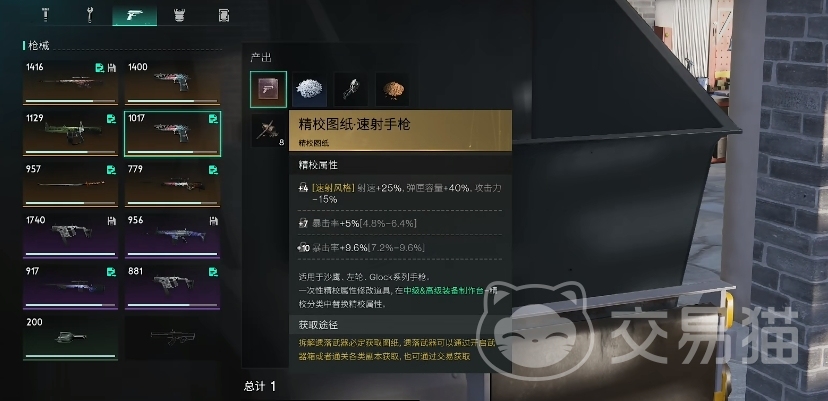 如果大家能够获取金武的话,那就非常不错了,拿到以后直接去分解台分解也能获得图纸,而这个也是大家所理解的速射双爆图纸,解锁以后直接去工作台进行制作,其中大部分图纸通过任务也能有机会获得,所以各位到时也不能忽视了。
