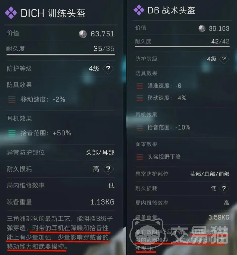 主要是头盔与护甲,护甲分为不同的防护等级,自然是越高对子弹的防护的效果越好。同等级下的护甲也是有不同样式的,有防护面积小耐久低的轻甲,也有防护面积大耐久高的重甲。不过即便是再高级的护甲也防不了所有的部位,例如手臂、腿。头盔可以抵挡致命伤害,而且不同的头盔对于视觉、听觉也是有影响的。战斗中,如果子弹命中没有防护的区域会打出晕眩,进而视觉上也会有影响。在新手阶段主要是看目标危险程度来选不同价格、类型、等级的防具。