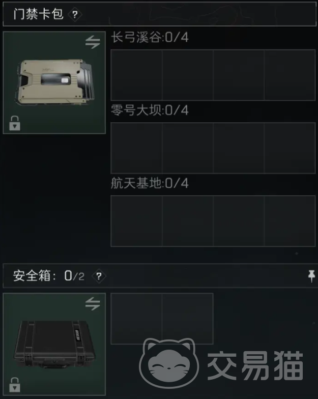 除了常用的装具外,还有几个特殊的装具,例如:门禁卡包、安全箱。门禁卡包是放一些门卡钥匙的,安全箱则是放武器配件之外的物品,这些东西即便撤离失败了也不会损失。所以,当在地图上搜刮到好东西的时候,可以第一时间放到里面去。