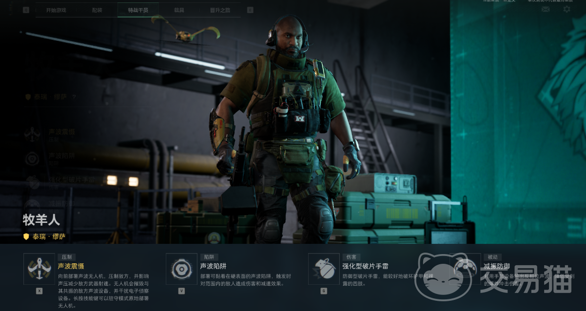 牧羊人其实是一个很强的战略性干员,它也叫做泰瑞缪萨。X技能叫做声波震慑,用了后可以召唤一部无人机。不仅能够射击,又可以摧毁敌方的声波设备,长按的话可以原地部署。v技能则是声波陷阱,可以放置一个附着在表面的陷阱,踩到之后会受到伤害并减速。