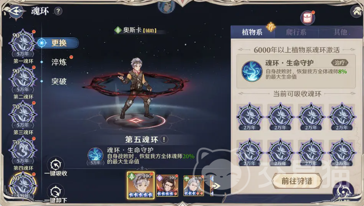 第二个方面是魂环,魂环能在星斗大森林通过猎杀魂兽获得,年限越高的魂环,对于魂师属性以及特殊能力的提升效果越强,初期还可以通过提高魂环年限的方式,快速的提高实力。第三个方面就是魂骨,魂骨一般是在组队讨伐,还有冰火两仪眼里面获取,可以去购买讨伐令,从而提高每天魂骨的获取效率,能快速增强队伍实力;另外在黑市货铺,或者是神识商店里面还能直接购买万年魂骨。基础魂骨除外,还能在召唤系统里面去召唤外附魂骨,进一步提高魂师的属性。