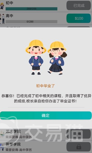 大家在通过初中考试之后就可以进入到高中,后续大家注意要选择理科,因为理科对于大家找工作是很有帮助的,理科中的很多专业都可以获得较好的收益,毕竟在游戏中赚钱也是很重要的一部分。另外对于考试方面还有一项很重要的设定,那就是考神附体,大家可以在开局通过刷广告拿钻石的方式来买考神附体,做题会更简单。