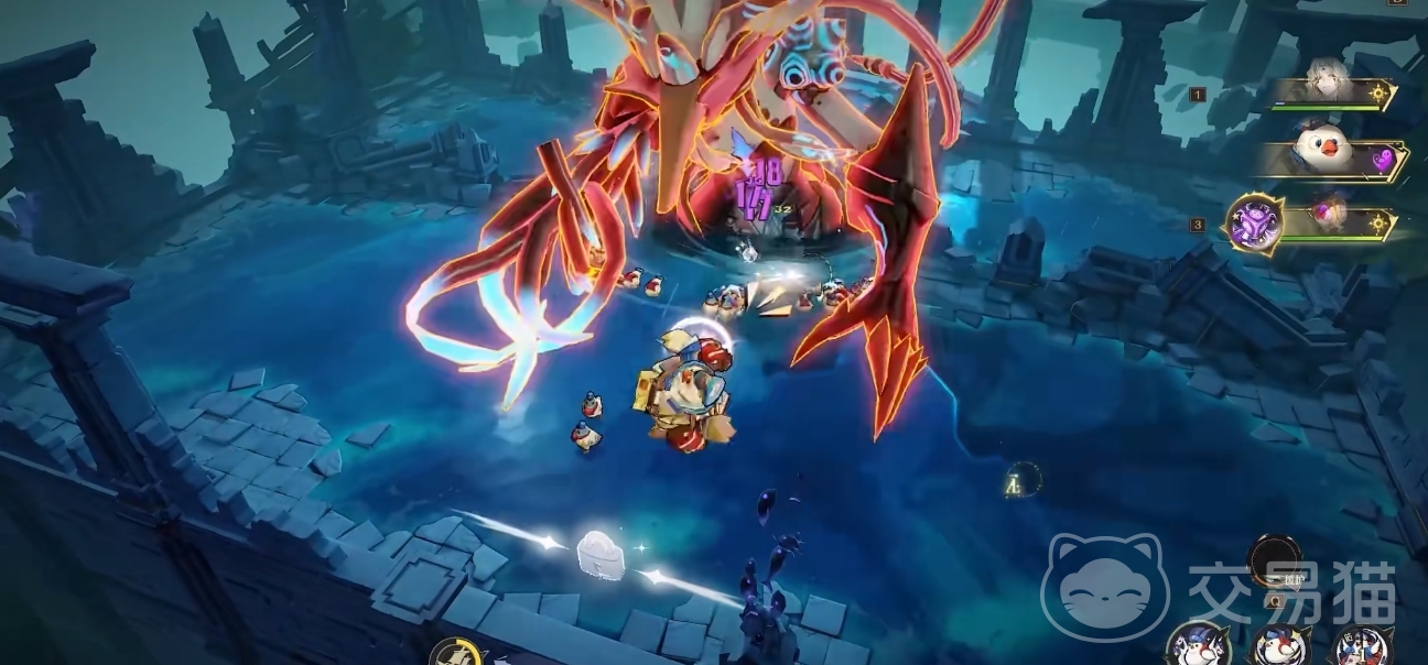 更何况,不光肉鸽之梦能主动召唤出多只好鸽们来协助自己进行攻击,在主C进行输出时,即便肉鸽之梦处于后台,也可触发召唤好鸽们的效果,让多只缩小版的肥鸽不断地出现在场上,可有效地加快队伍在关卡里的清怪速度,让玩家们能更快地去面对关卡的boss。