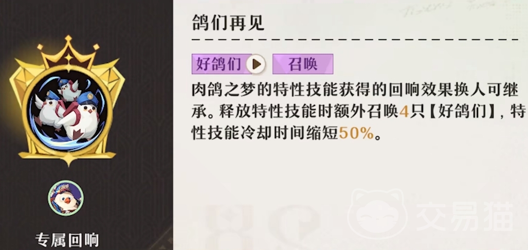肉鸽之梦最强的地方在于它能在换人后,令新上场的角色来继承回响效果,可让输出位打出更为强力的输出,因而在辅助能力上很是不错,对于一些比较缺拐力的主C来说,带上肉鸽之梦可令他们的输出能力提升一大截,是无尽梦回里较为实用的一名偏辅助向爆发角色。
