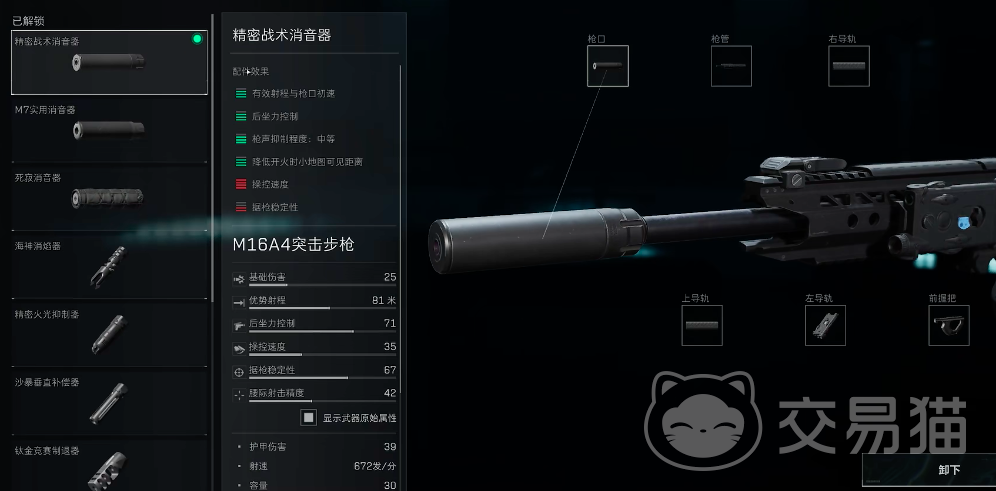 建议玩家可以使用m4精英长枪管儿对其进行组合,将配重和长度进行拉满。如果手感较差的话可以带上X25U斜侧战斗枪把,在镜子方面的话,玩家随便选择一个高倍镜即可,建议玩家安装一个镭射可以提升开镜速度。在消音器上可以选择精密战术消音器。