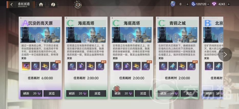 因此玩家应该努力提升委托派遣建筑的等级,以便接取或刷新到更高品质的任务,这样不仅可以提高任务的收益,还能为社团带来更多的资源和贡献,委托派遣玩法中,任务按照难度和奖励分为三个等级,A、B和C,A级任务是最高等级的任务,通常需要6个小时才能完成,但相应的它们提供的奖励也是最丰厚的,B级任务大约需要4个小时,而C级任务则只需2个小时即可完成,每个任务完成后,玩家都可以获得社团贡献、炼金砥石、社团资金以及中级经验药剂等奖励。