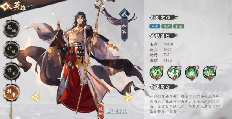 神农与刑天这两位传奇人物其实一般都是放在队伍当中使用的,神农作为神农部落的首领,被誉为炎帝,他不仅教会了人们种植五谷和使用火,更以无私的精神亲尝百草,为治愈万民病痛而努力,在游戏中神农化的治疗会守护着每一个队友,作为人阵营的奶妈,神农拥有出色的治疗能力和团队增益效果,他的技能能够为队友提供稳定的恢复效果,确保队伍在战斗中始终保持充沛的战斗力,同时神农还能增加队友的法术防御和护盾,提升了队伍的生存能力。