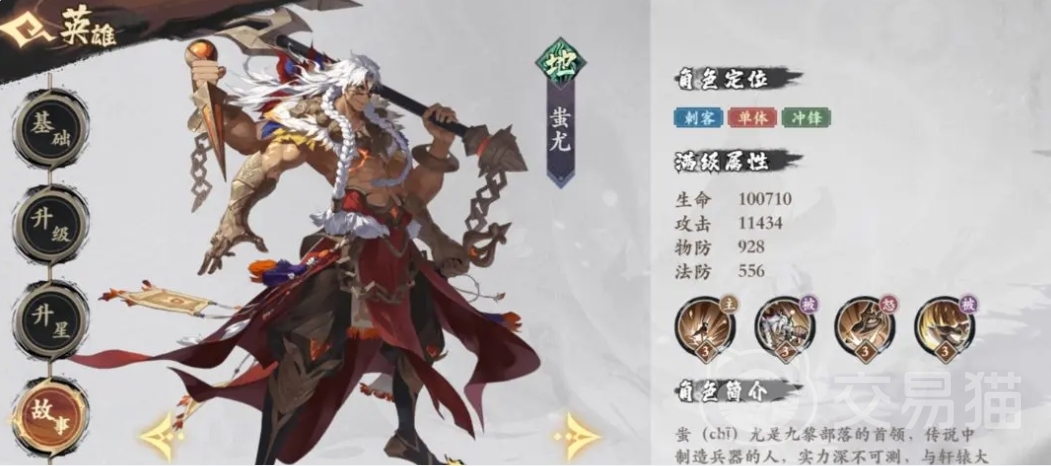 蚩尤作为九黎部落的领袖,他与轩辕黄帝的羁绊效果很深,在游戏中,蚩尤的物理伤害是他的核心输出,还有不错的单体与群体输出能力,蚩尤的核心技能,它赋予了他如闪电般的穿梭能力,使他能够在敌阵中造成高额物理伤害,当蚩尤血量告急时觉醒效果更是让他的攻击力飙升至巅峰,此外蚩尤还精通多种控制与增益技能,如减速、增伤等,这些技能进一步提升了他在战斗中的全面性和灵活性。