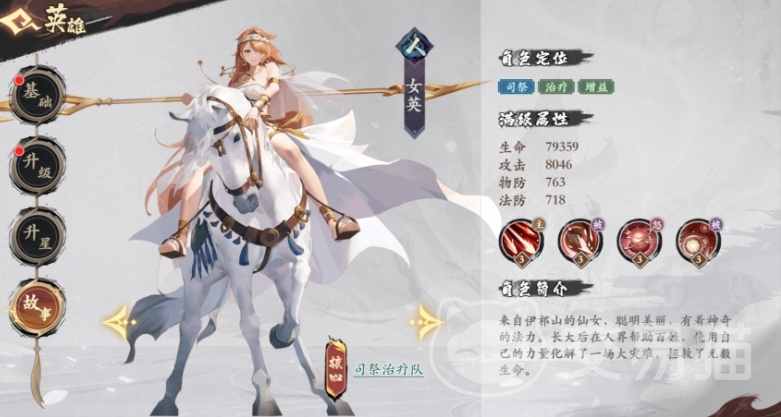 女英与英招这两位传奇人物也是很不错的,女英是一位集治疗、增益与输出于一体的法师角色,她的技能不仅能够为队友提供强大的治疗效果,还能增加队友的攻击力和暴击率,同时女英还具备一定的输出能力,能够在战斗中为队伍带来额外的伤害输出,女英能够随机为两个友方英雄释放攻击提高效果,提升队伍的输出能力,在被动技能的加持下,女英通过此技能提升自身生命值和攻击力,既增强了生存能力,也提高了治疗效果和输出能力。