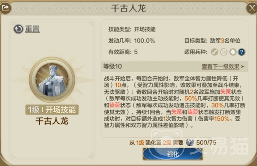 在智力上面这样的设定无疑让诸葛亮在法系核心的位置上更加稳固,同时也预示着他将成为双减战术中的最优选择,诸葛亮的双减技能用得好的话其实威力甚至可能超越秦始皇,诸葛亮的自带技能在战斗开始后,每回合开始时,他都能巧妙地降低敌军全体的智力属性,这一效果是无法被驱的散,堪称打中速法核队的神技,想象一下,在激烈的战斗中,敌方英雄的智力不断被削弱,他们的策略和技能都将受到极大的限制,这无疑为我方创造了更多的机会。