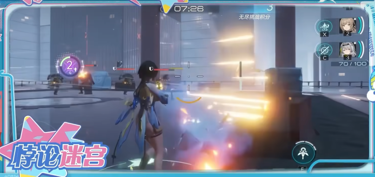 首先,凯茜娅·朝翼使用的是突击步枪类武器,定位为高频召唤输出角色。她的常规技带有位移效果,在位移终点会生成一个召唤物。这些召唤物可以通过射击充能,充能满后会进行协同攻击,并消耗掉召唤物。这个设定有点像以前的召唤流玩法,但枪凯明显比传统召唤流更加灵活。因为她的常规技不消耗耐力,这意味着在战斗中她的操作空间非常大,可以频繁进行位移,快速穿梭于战场。