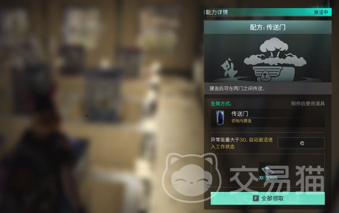 只获得门扉远远不够,玩家还需要让异常能量大于30才能让这个传送门处在正常使用的状态下,而且要在领地内建造传送门,这样让两者结合起来才能拥有传送的能力,想要使用传送门也非常简单,玩家可以直接把传送门放置在另外一个地方,这样就可以直接实现快速往返穿梭。