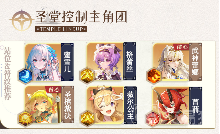 只了解角色的技能是远远不够的,还需要搭配出一支最强阵容才可以,在游戏里最适合的阵容组合就是圣官裁决,蜜雪儿、薇尔公主还有格蕾丝,在这支阵容里,既有能产生持续伤害的输出角色,也有像升官裁决这样能担任团队控场的角色,其他作为能帮助整个队伍有更强的力量,最好在这支队伍里使用武神雷娜作为核心,这样能保证持续不断的输出。