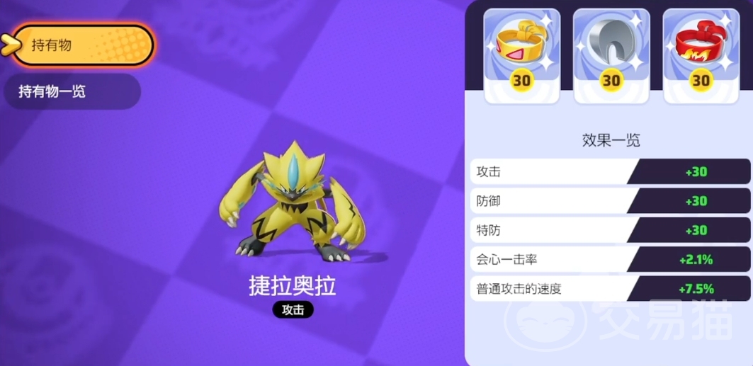 在持有物的选择上,气势头带、弱点保险和猛攻哑铃是推荐的组合,这些持有物能够大幅增加暴击率、暴击伤害和物理攻击,同时这些持有物也能够帮助捷拉奥拉在战斗中更好地提高自己的整体实力,从定位上来看,捷拉奥拉偏刺客、战士,所以强势期需要到7级以后,使用的时候这个宝可梦非常灵活多变,既有回复能力又有爆发能力。