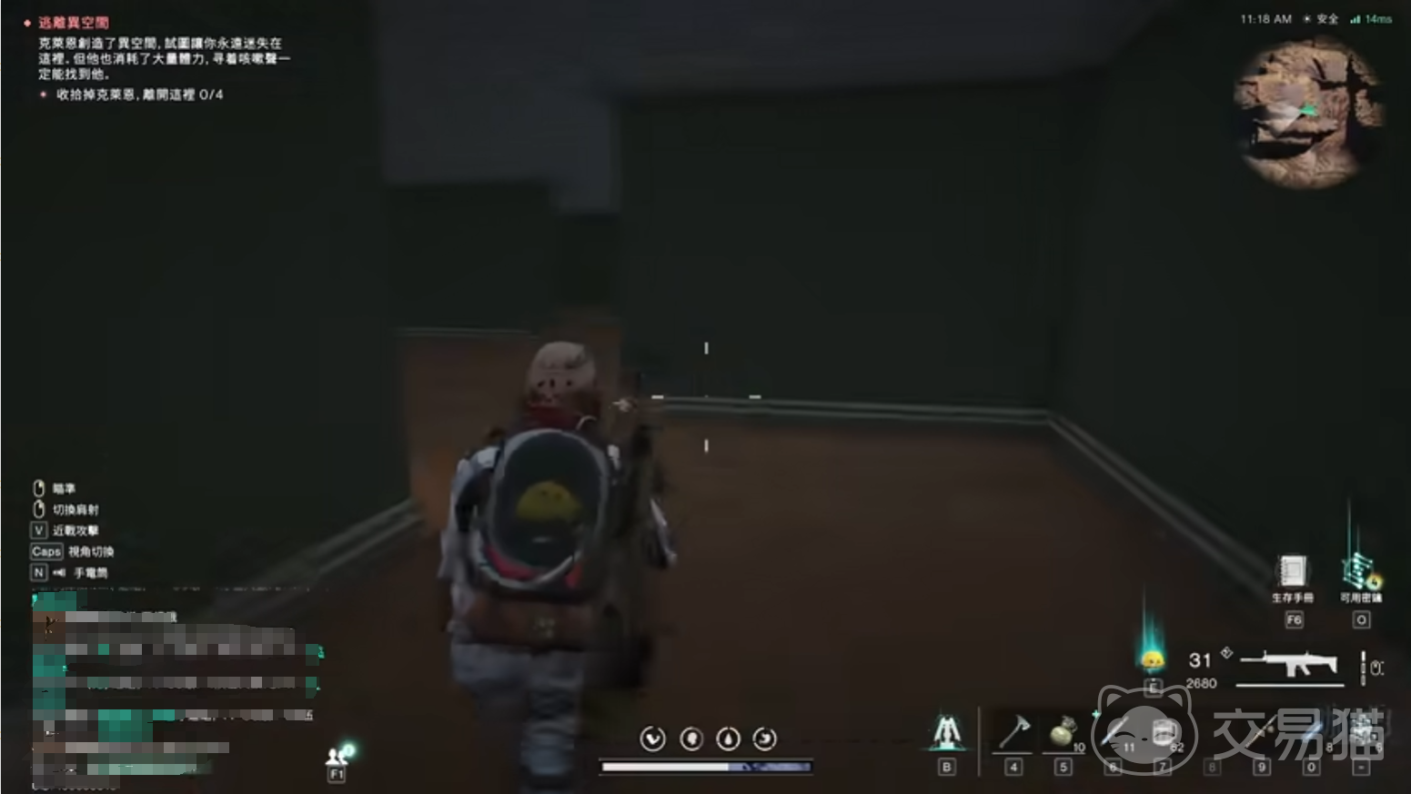 2、在进入到迷宫之后把耳机的声音给打开,要注意听他咳嗽的声音。在听到声音之后就过去找他,看到他就将其打死。每一次找的位置都是不固定的没有顺序,主要的参考就是听他咳嗽的声音,听到了就代表他在附近直接开枪去打。如果大家实在是迷路的话,那么可以在图中找一个参照物作为目标,比如图中的桌子。这个桌子的走廊处正好有几个门,从这个方向来回走去其他的房间最后再回来,如此重复就可以了。