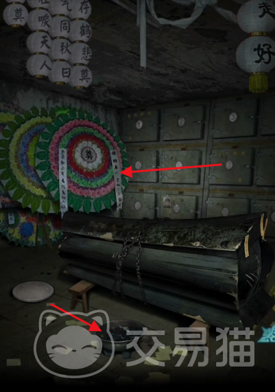 随着游戏的深入,你将来到停尸间。在这里,你会看到一些花环和一张于庶的照片。拾取这些物品后,将它们放入相框中。当你放入正确的照片和花环后,相框会打开,你将获得一把“棺材钥匙”。