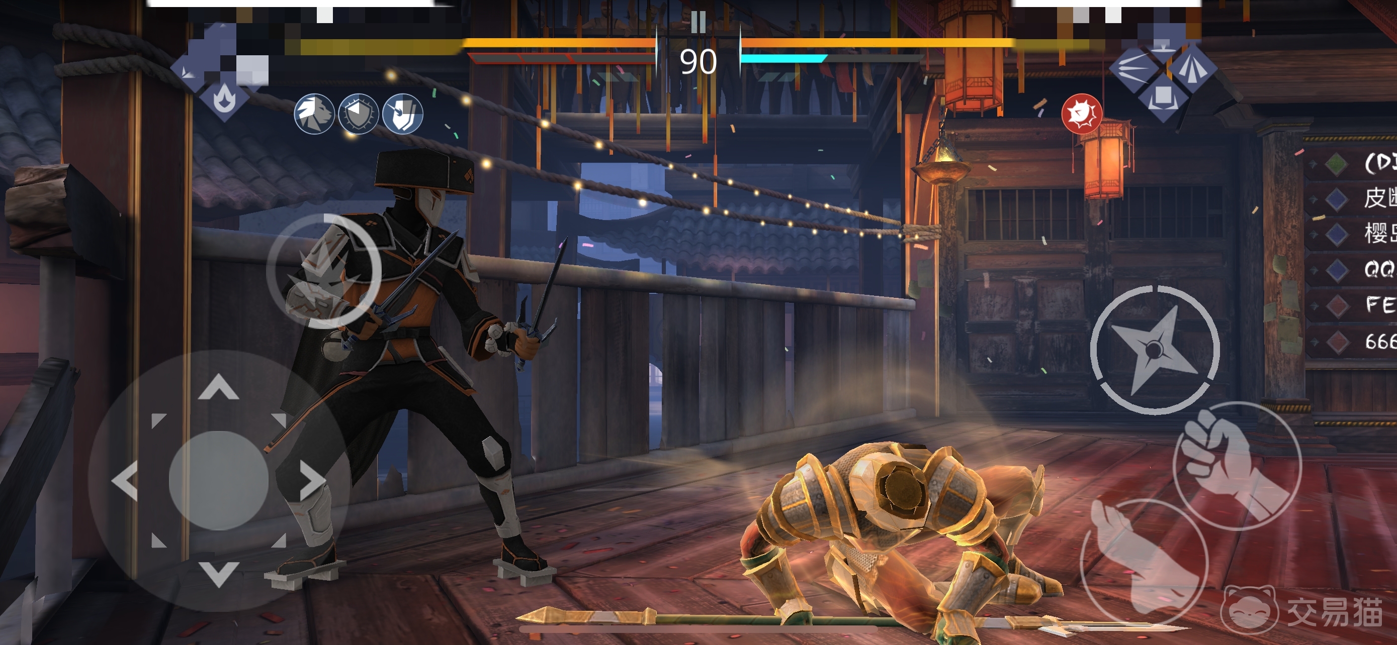 而暗影格斗这款游戏中最难的动作招式就是抱摔敌人,主要可以通过靠近对手之后攻击,所以快速滑动两下轮盘的闪避招式一定要用熟练,这个操作需要多加练习,建议前期可以现在训练营中找伽林这个静止的npc将此操作熟悉一下;上下左右轮盘键再加上暗影技能这个就不用多说,一般我们要使用触发最快的先打出控制,因为很容易被打断;而最后远程武器的招式千万不要连续使用,人机都是会躲避的,而且还有冷却。