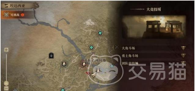 打开大地图,然后缩小化,找到有两把剑交叉的就是大竞技场了,大竞技场有分三种,分别为大角斗场、勇士角斗场以及团队竞技场。
