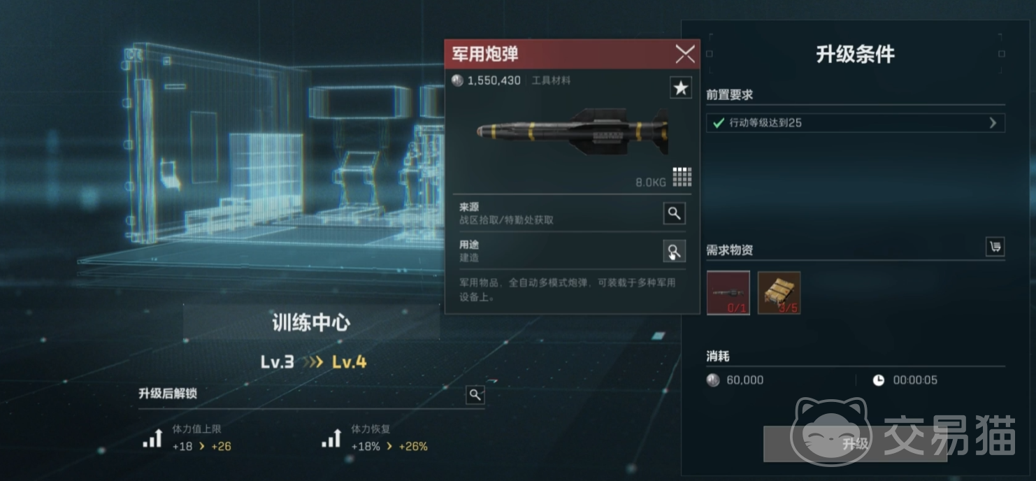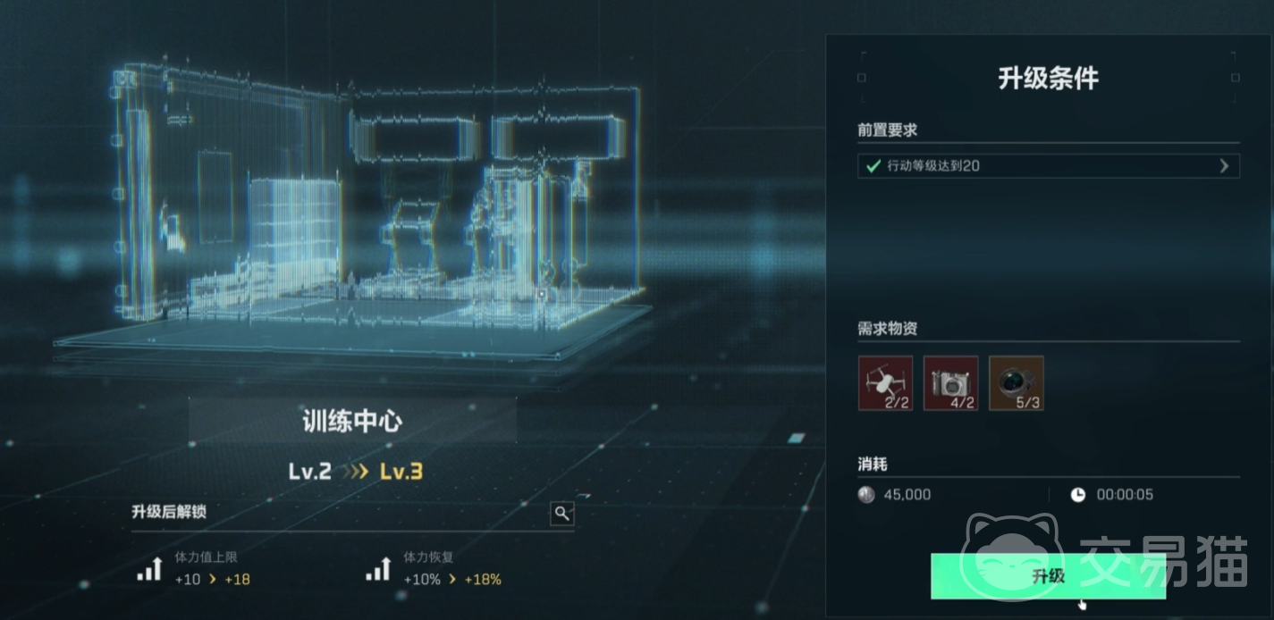 三角洲行动训练中心有什么用以及这个功能要怎么升级已经给大家说明了,如果想要后期挑战更宽阔的夺金地图,这个功能就一定要升到够高的级别,不然在灵活度和地图翻越能力方面将会有很大的劣势,跟队友一起协同作战的时候也会很不方便。