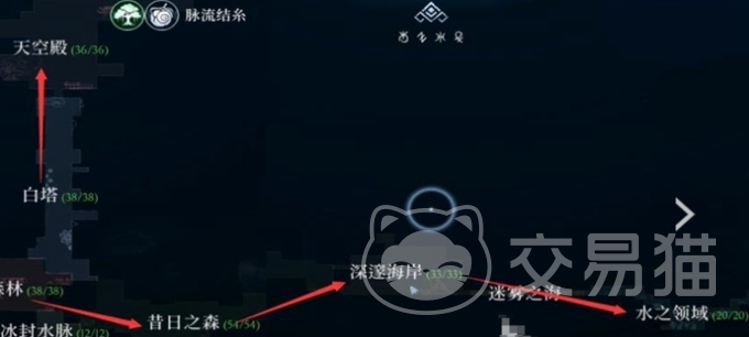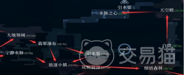 走法还是很简单的,先要找到起点,起点是彩虹原野。在这里玩家还能找到一个小镇,来到小镇上玩家可以探索宁静水脉。在当前的地区要说最大的分支,那肯定就是大地领域。玩家在通过水脉之后,然后通过此处就可以来到下一个地图,这里是翡翠瀑布。