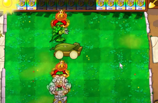 之后可以在中间继续补充汉堡射手或者向日葵女王,这样就能够轻松通关了,向日葵女王有着不错的技能,除了能够制造太阳提供丰厚资源之外,还能发射火焰球对僵尸进行炮火攻击。