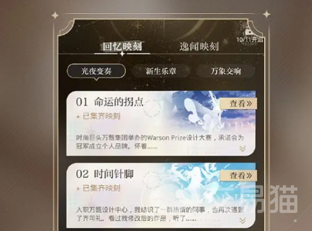 在主线限时活动中,通过使用[星霓灯]于[映刻星环]中可以获得当期的映刻。当活动结束后,[光影映刻]系统中将开放[溯昔集市],提供兑换选项,满足玩家对往期映刻的收集需求。这一机制的推出,无疑为热衷于完整收藏的玩家提供了极大的便利。