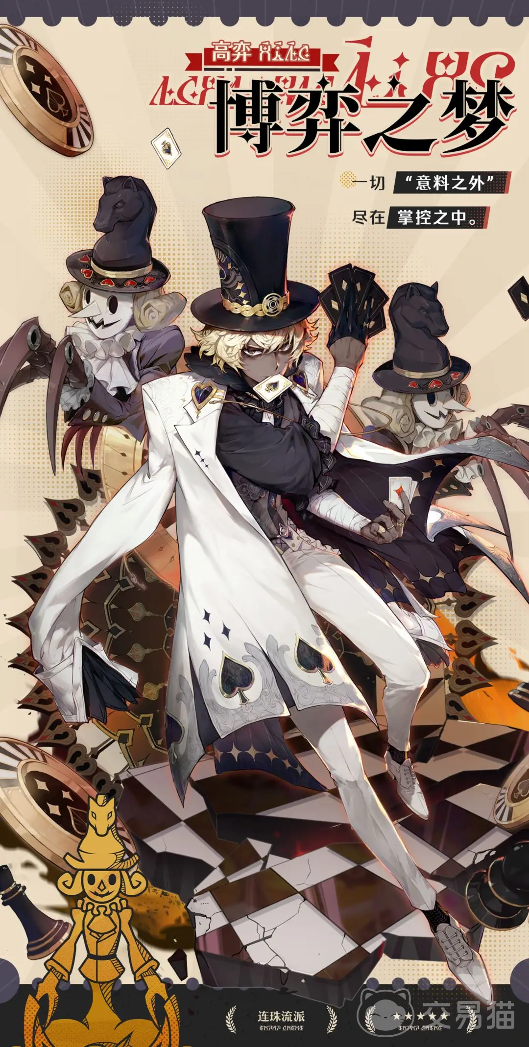 生存技“金蝉脱壳”,技能展开后,他会在原地留下一个静止”残影”,并且对前方瞬移一段距离,当”纸牌”和”王牌”都命中了对手,但是无法寻找到下个弹射目标的时候,那么“残影”就会作为弹射的中转,并且不消耗弹射的次数。特性技“王牌先行”,投掷”王牌”攻击目标,能进行三次弹射,每一次弹射都会降低30%伤害,当对手身有标记时,可以产生一张戏法牌。