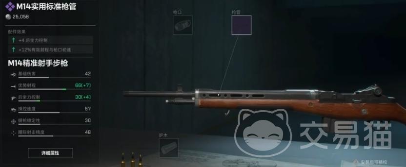 膛口制退器:膛口制退器可以减少射击时的后坐力,使武器在发射后能够更快地恢复到稳定状态,方便玩家进行下一次射击。对于 M14 这种半自动步枪来说,减少后坐力可以提高连续射击的准确性和速度。