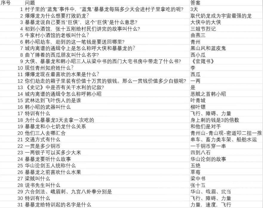 游戏目前一共推出了31道题目,后续每一个星期都会新增一些题库,玩家每天只能答10条,依次随机的出题回答,而这些问题大部分都是以游戏相关的,还有一些古代历史、江湖问题,这也是很好的阐述了对应这游戏叫行侠仗义五千年的名称。