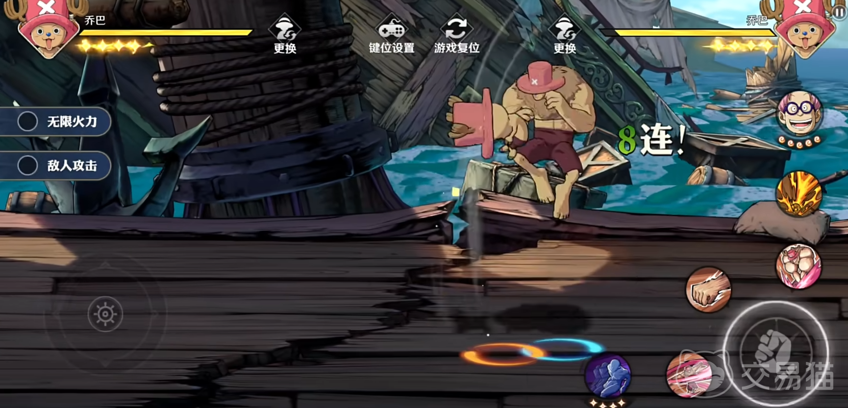 乔巴的话就很有趣,可以不断旋转击飞敌人。还能够吃蓝波球儿让自己变大,并攻击对手。至于其他主角团角色,依然沿用了经典的漫画形式和攻击手段。能让小伙伴们一玩就上手,重拾一下以前的经典情怀。