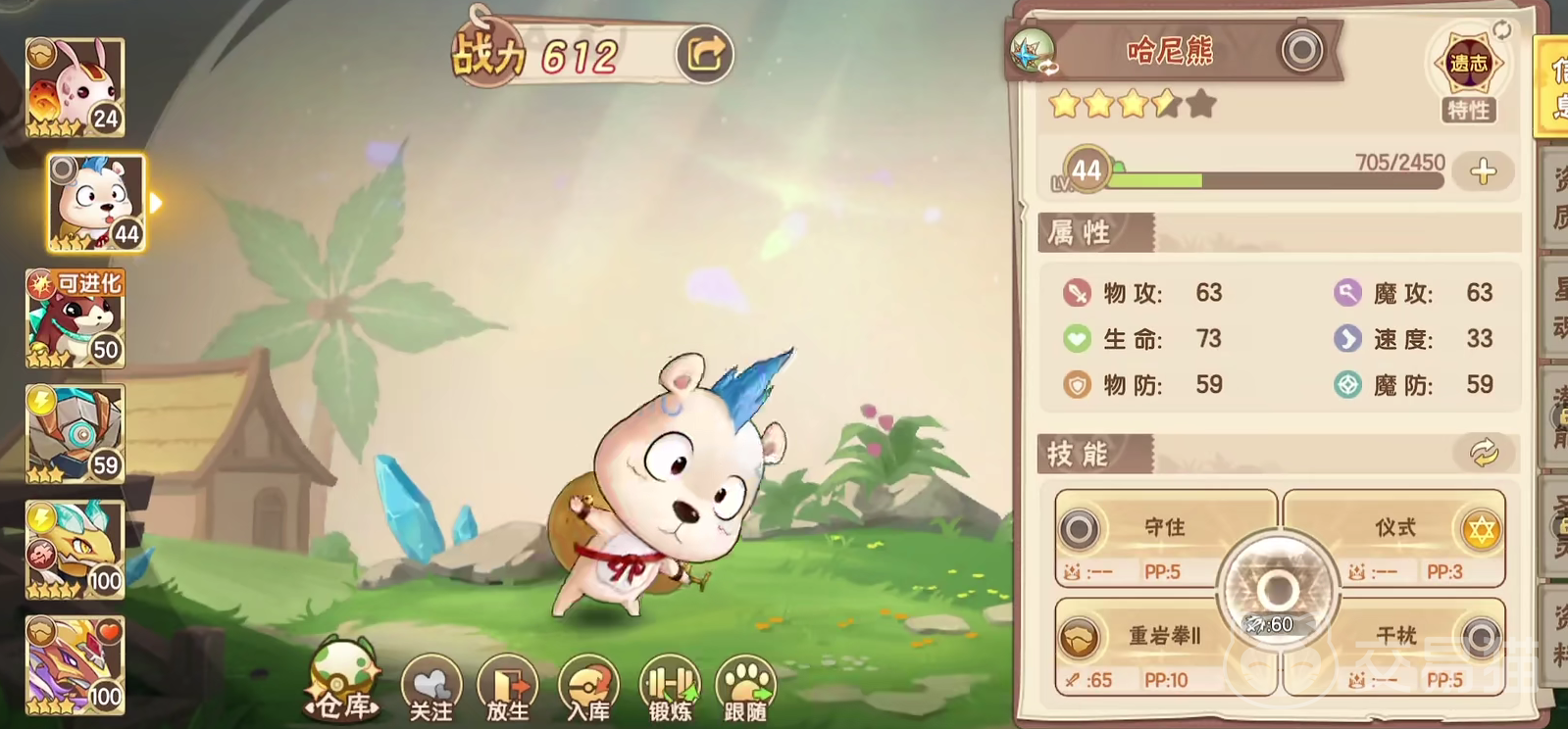 玩家在针对圣灵宝蛇的战斗之中,则要尽可能地切换能够克制他们的阵法,当然直接使用哈尼熊作为自己的主要精灵也是可以的,因为哈尼熊仔每次死亡的时候,都会给敌人进行一次反制伤害,该反制伤害的数值和所受伤害的数值是完全相同的,不仅如此动画哈尼熊需要玩家投入的资源也是比较少的,等级达到30g或者六十级就能够挑战一百级以上的怪物了。