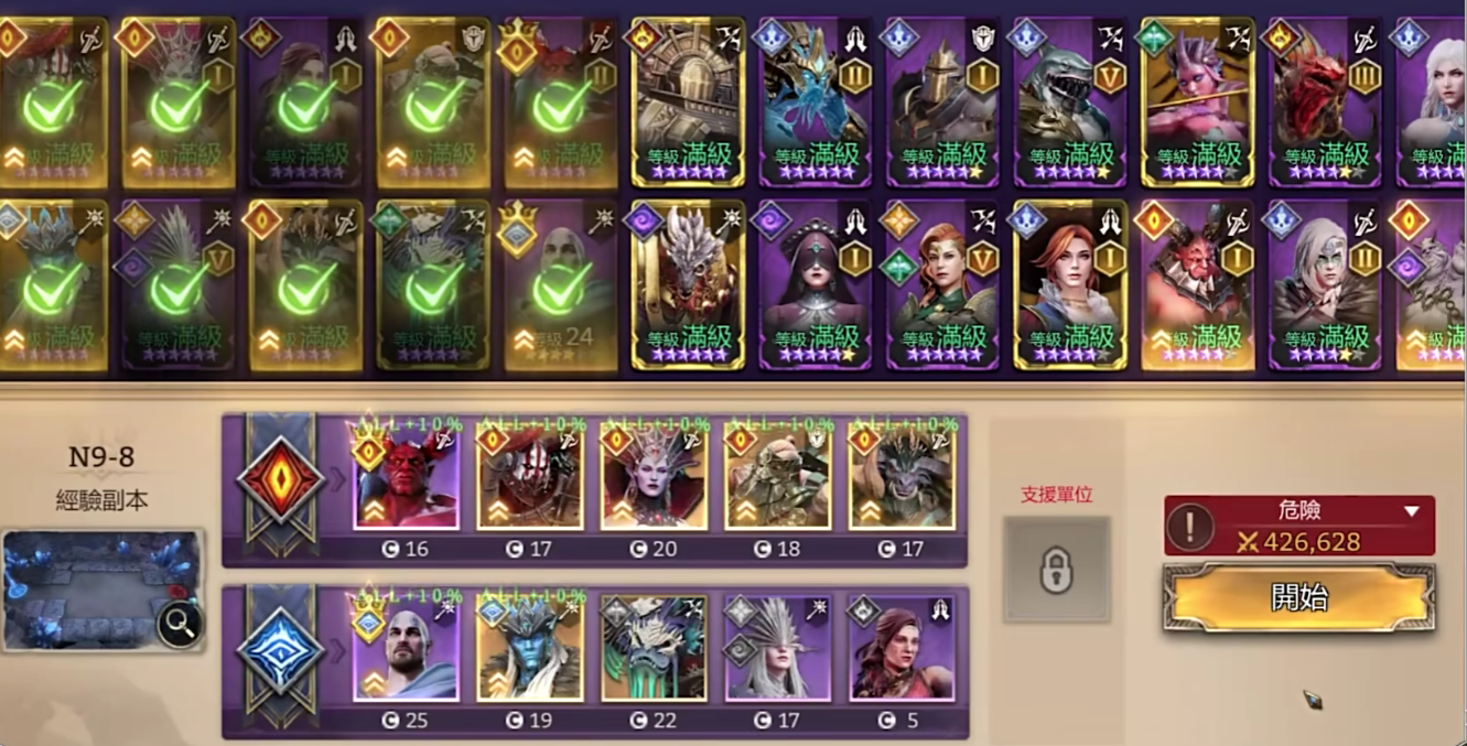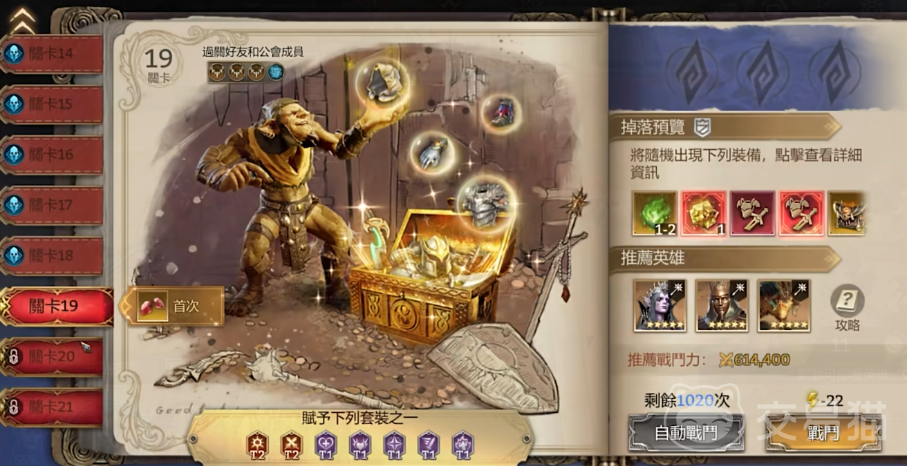 游戏中,各类英雄的品级分为金色、紫色、蓝色,在游戏的最初期,游戏会赠送玩家一个紫色的战斗角色和三个蓝色的魔法师角色,这四个角色在游戏的前期地图当中都有不错的发挥,随着游戏的练度提升,玩家需要挑战的关卡难度也会升高,此时玩家可以通过抽奖,或者是在英灵殿之中祷告获得新的英雄。