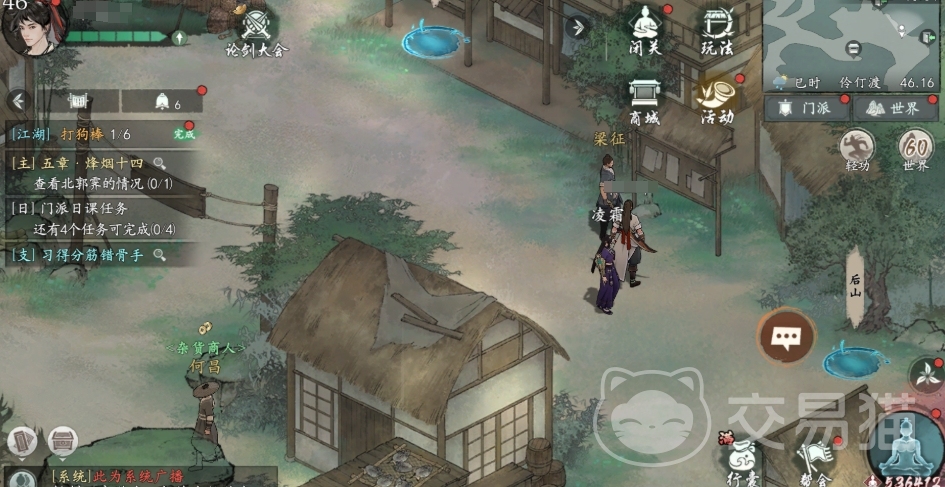 在成功触发以后,就是去接取任务了,目标就是得和项大力进行对话,把所有的引导任务全部完成,而这个时候小伙伴们得在伶仃渡区域找到梁征,具体的坐标为(-46,16),在这里接取任务即可。