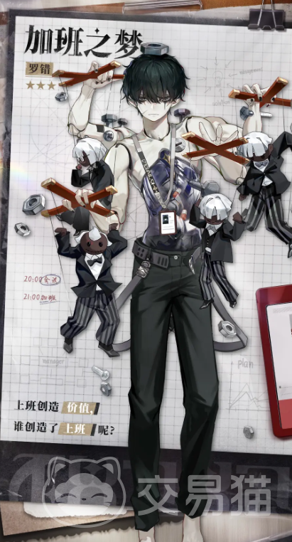 无尽梦回的加班之梦名字叫罗错,他诞生于无数辛勤上班族最害怕的加班梦境,自身的性格也非常遵守制度,热爱上班把工作看成自己的最大价值,很多小伙伴在拥有他后,好奇无尽梦回加班之梦技能是什么,那么为了满足大家的好奇心,下面就来分享一下加班之梦的技能。