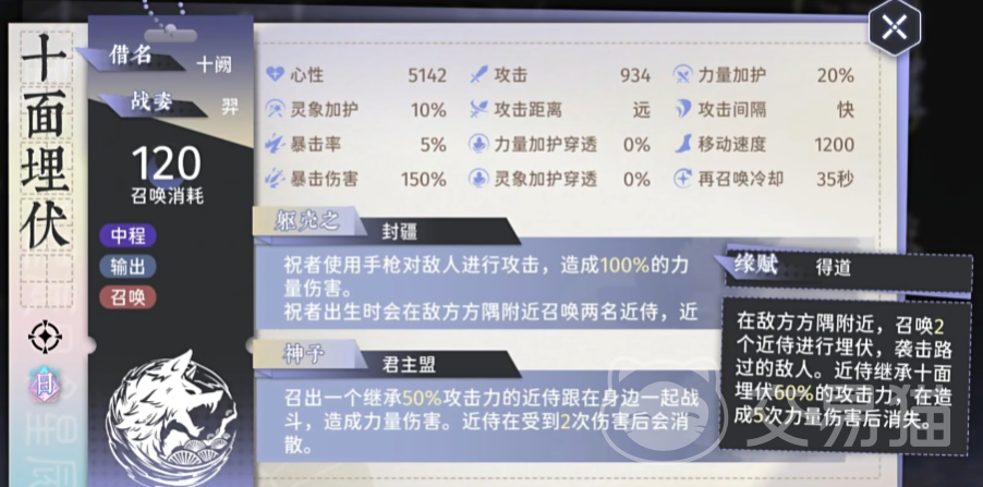 那么有哪些角色值得大家培养呢?主C更推荐十面埋伏,他的技能偏向于中距离输出,又能够召唤式神。可以让你安逸地待在后面无伤输出,对于新手来说,培养成本以及操控难度也会更低。
