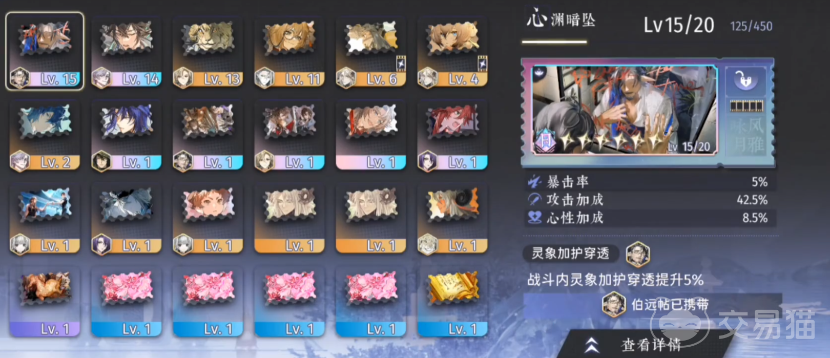 另外武器也能决定角色的强度,只有为角色佩戴好相应的武器后。才能给予他们强大的战斗力,这里更推荐心渊暗坠,佩戴后可以提升攻击力以及暴击率。让你瞬间击溃敌人防御,从而增加自身伤害。另外武器升级后,可以大幅度提升各项属性。基础等级为20级,升满了之后就要进行突破。才会解锁下一个等级,让你勇攀高峰!