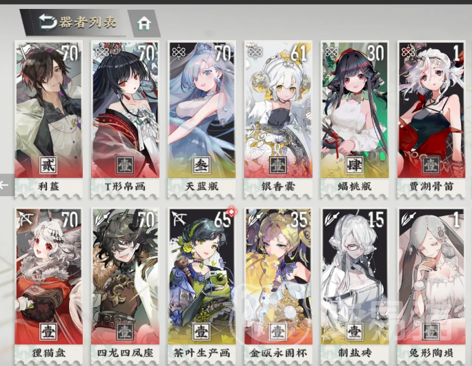 另一个强力阵容为云纹、鹿角立鹤、茶叶生产画、大神盒、宋金项饰、狸猫盘和万国金图。这个组合通过合理搭配不同角色的技能特点,能够在战斗中展现出惊人的实力。每个角色的特性都能得到充分发挥,从而实现最佳的团队协作效果。