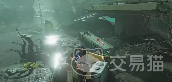 进游戏后镜头右转,先消灭右侧桥上大巴顶部的触手,然后直接滑翔,朝着桥下侧翻的白色火车上飞,落在最中间位置,注意是最中间的位置。