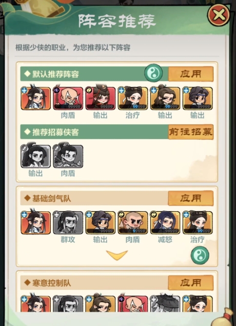 如果是剑客阵容的话,推荐大家去选择组合为顾公子、剑主、飞剑阿京、梦罗汉、百灵儿、楚玄香,其主要就是以剑主为核心,辅以梦罗汉和楚玄香,可为大家去提供一个稳定的远程输出和控制,而其中顾公子和飞剑阿京是主打增强全体伤害的,更是能在关键时刻为各位去提供冰寒的控制,降低敌方的攻击速度甚至会产生冰冻的效果,治疗辅助百灵儿更是大大的确保了队伍的生存能力和韧性,使得这个阵容在竞技挑战中能够所向披靡。
