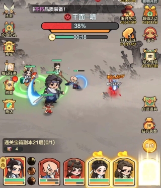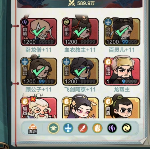 如果大家是平民玩家,只想要推图的话,选择祝峨眉、天龙帮主、楚玄香、风华和十三郎就可以了,此阵容只要十三郎放了技能,其余前排英雄秒补技能拉仇恨即可,重点就是不要让十三郎扛伤,这样就能很好打。