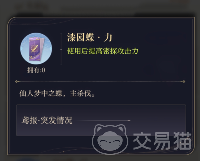 因为获取漆园蝶的途径很少,目前主要是通过鸢报中的突发情况获取的,属于是僧多肉少,所以更倾向于只给队伍中的主C或者主力承伤角色使用。