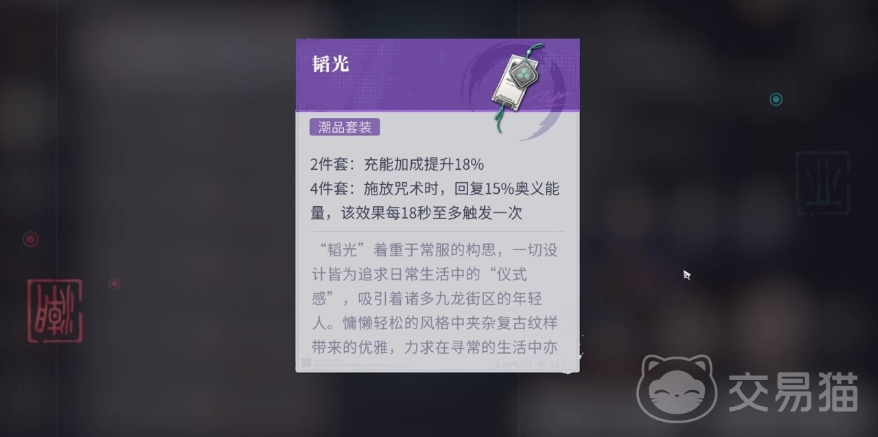 在众多的潮品套装中,最为合适欲影的肯定为韬堇,毕竟能加充能的套装可让欲影更快地积攒起自己的大招,从而为队伍提供更为强力的支援。当然,若是韬堇潮品的数量不足以满足套装的需求,或是属性上差点意思,也可让欲影带上赤堇(火套),或是赤堇2件套搭韬堇2件套来过渡。