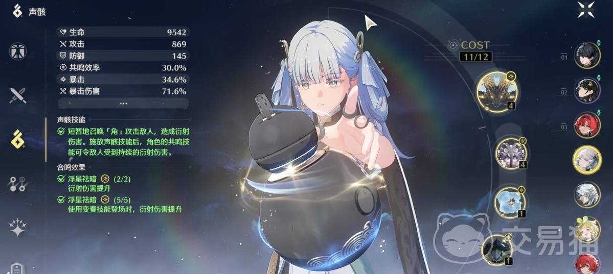 同时对于声骸的选择,除了今夕之外,玩家也可以搭配浮星祛暗,它有额外的衍射加成,同时还能提高30%的衍射伤害,持续时间高达15秒,有助于玩家们提升自身的爆发能力。第二个则是不绝于音,这个也是非常强大的攻击套装,能够短时间内提升角色的攻击能力,最多可以叠加4种,能够显著的提升角色的整体持续输出效果。