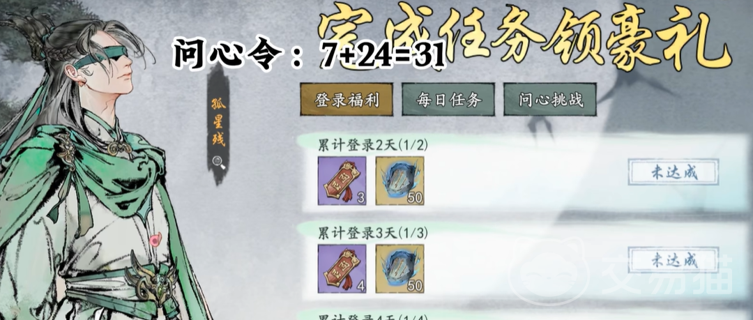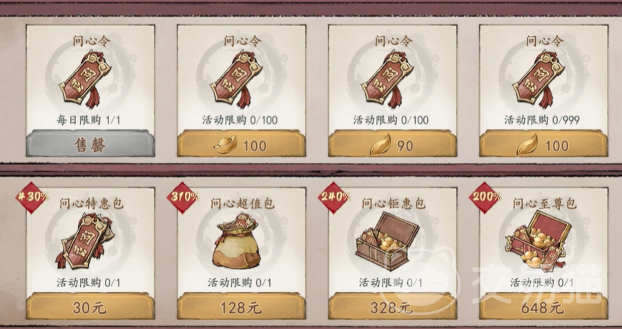 孤星残这个活动主题流程是比较长的,首先从同心商店来看,这个商店可以购买问心令,是兑换这个侠客的关键道具,不过免费的牌子一天只有一个,大概玩家们一周能领取到6到7个左右,而想要短时间获得令牌的话,那么就只能通过使用元宝购买了,那是比较费钱的,零氪玩家只推荐领取免费的牌子。