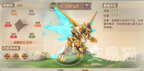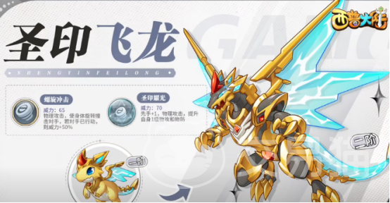 另一个技能是圣印耀光,这是该角色的绝招,同时也是物理攻击,能够有效提升自身一级物理攻击及物理防御。作为游戏当中人气较高的精灵,当玩家达到16级并通过挑战塔20层,那么就能够获得圣印飞龙幼崽了,获取之后玩家可以培养。