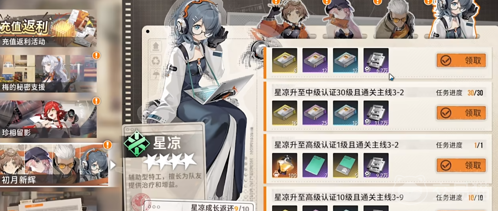 这一队是由免费角色组成的新月队,角色升阶并通关主线能返还培养资源。新手开局30连会必定获取一个六星角色,在玩家没有拿到六星之前,前期推荐这个推图阵容。其中,千秋是前期最强5星推图角色,有特殊的养成资源返还活动,意味着新手可以拿着资源快速提升千秋等级与技能强度。