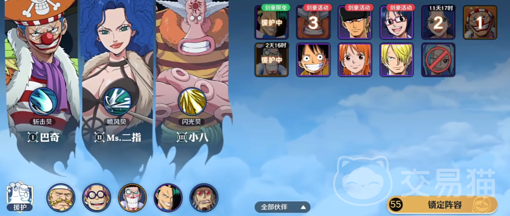 由于赛制采用的是三战两胜,所以你需要选择两个伙伴。然后也可以装配空岛贝以及援助技能,在对决之前,你还可以自由调整出场的角色顺序。开始之后,还会有一些开场白,为你加油鼓掌!每一回的对局时间为60秒,时间到了之后谁的血量最多就是胜利者。期间别人也可以观战,见证你们的巅峰对决!