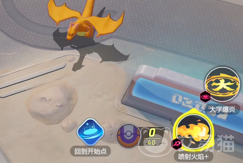 接下来的第二场教学则是一场实战教学。在这款游戏里面,玩家们需要和4位队友一起配合来和对面的5位玩家一起进行竞技。比赛的胜负条件就是积分。我们需要在时间结束之前获取到比对方更多的积分,这样才可以获取到游戏的胜利。本次的教学我们使用的宝可梦是小火龙。这位的能力比较平均,是前期新人玩家们非常好用的一个宝可梦。