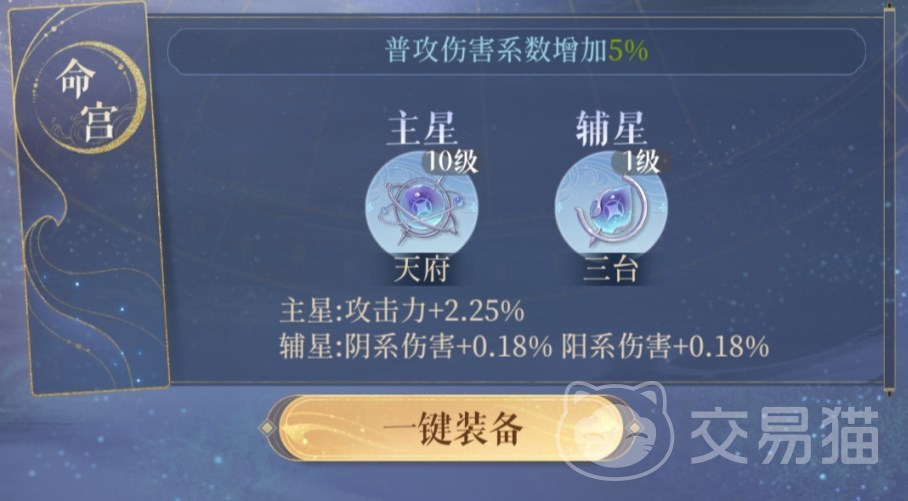 游戏里的密探一个命盘格子中可以同时装配主星和辅星,先来看看主星,天府、武曲、天机这三种都可以,天府是加百分比攻击力,是输出向密探通用的主星,有金的最好,没有的话紫色蓝色过渡也行。