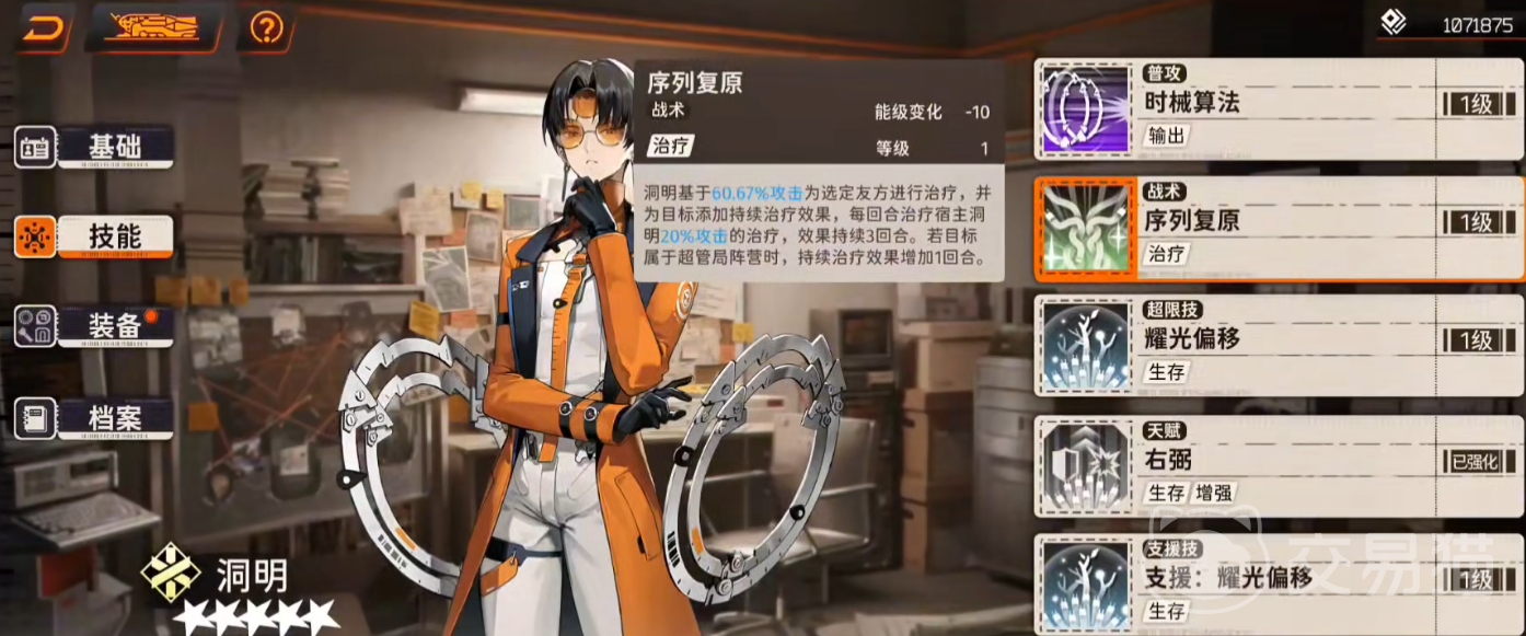 首先是洞明的战术技能序列复原,这一技能可以为制定的队友进行治疗,并且还可以带来持续的治疗效果,另外还可以治疗洞明自身,总共可以持续三个回合,如果目标的队友是属于超管局阵营的话,这个治疗的效果可以额外增加一个回合。